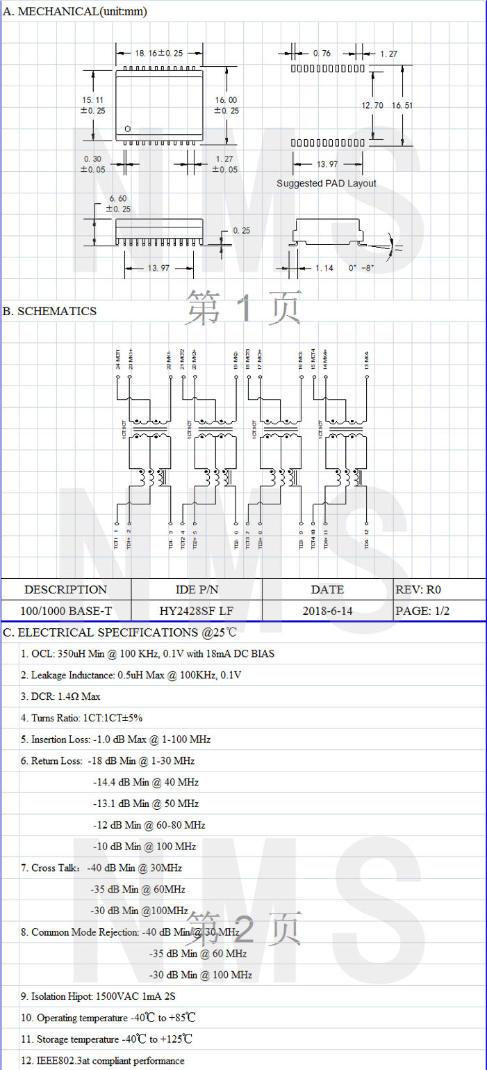 產(chǎn)品備注:SMD HY2428SF LF產(chǎn)品系列